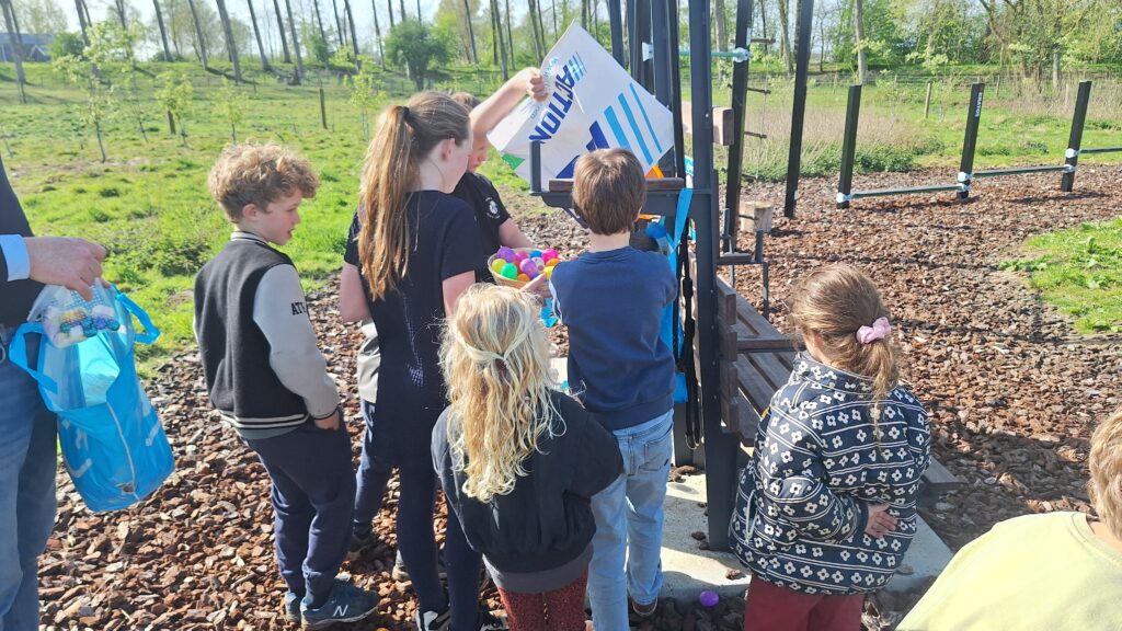 Afgelopen maandag was de aftrap van onze eerste activiteit met de nieuwe bestuursleden, en wat een succes! Onder een heerlijk lentezonnetje verzamelden enthousiaste kinderen met hun mandjes zich bij het natuurgebied om fanatiek op zoek te gaan naar de verstopte gekleurde eieren.